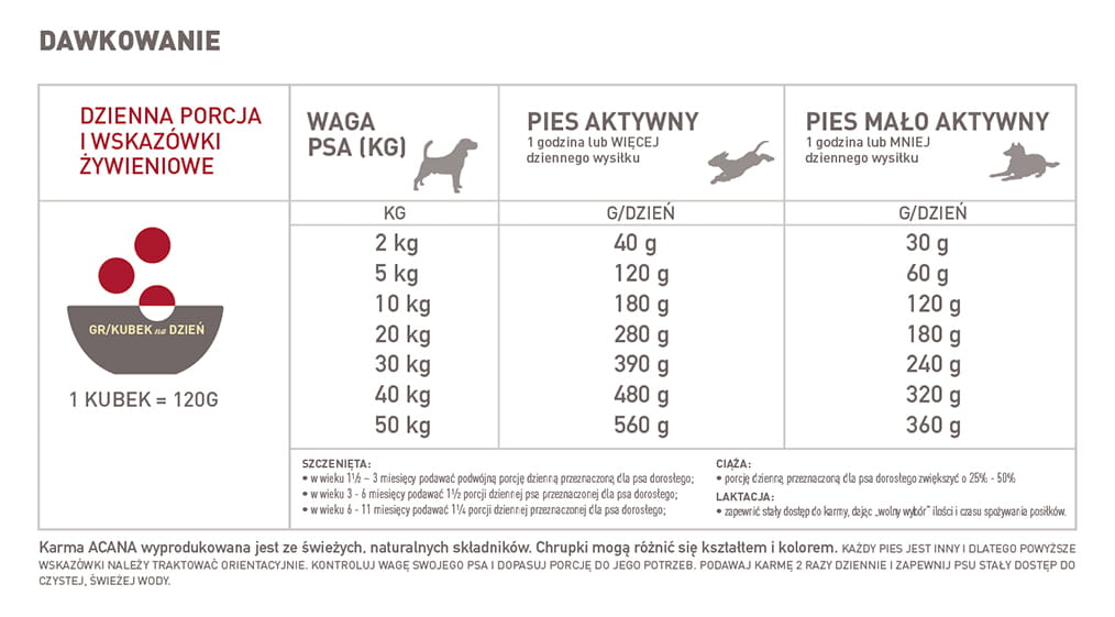 Formuła ACANA Classics Red Meat jest odpowiednia dla wszystkich psów w każdym wieku, za wyjątkiem szczeniąt dużych ras.