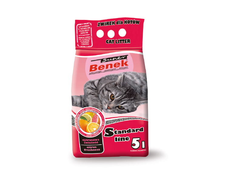 Bezpyłowy mineralny żwirek dla kotów, wytworzony z bentonitu najwyższej jakości. Specjalnie wyselekcjonowana frakcja ziarnowa zapewnia optymalne właściwości produktu. Żwirek skutecznie sorbuje ciecze tworząc zwarte bryłki oraz pochłania nieprzyjemne zapachy. Produkt dobrze się sprawdza w utrzymaniu czystości, gdyż w ograniczony sposób wynosi się poza obszar kuwety. Polecany także kotom o średniej i długiej sierści. Produkt wzbogacony dodatkowo o kompozycję zapachową, która została zaaplikowana w Technologii Trwalszego Zapachu. Dzięki temu w otoczeniu toalety przez długi czas panuje przyjemny i świeży zapach owoców cytrusowych. Zastosowana kompozycja jest akceptowana przez koty.
