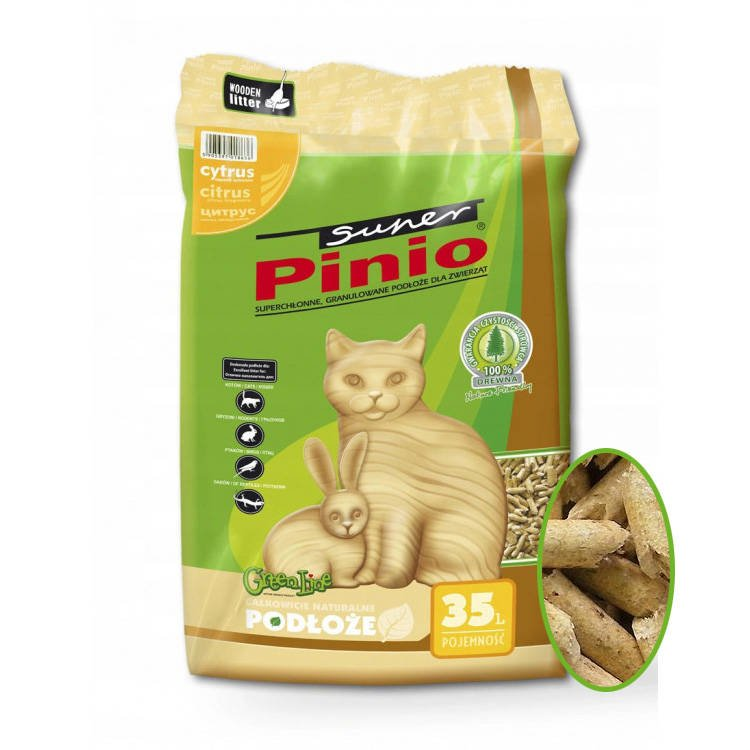 Super Pinio jest uniwersalnym granulatem stosowanym jako ściółka dla zwierząt domowych takich jak: koty, chomiki, świnki morskie, króliki, szynszyle oraz ptaki. Ma on kształt wałeczków o średnicy 6 mm i długości od 6 do 12 mm.