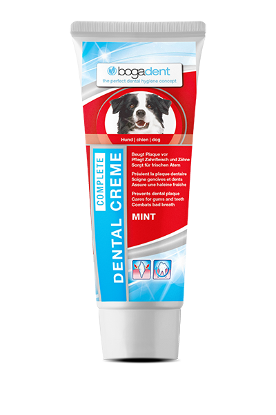 BOGAR BOGADENT DENTAL CREME MINT - to nowa pasta do zębów o smaku miętowym dla psów. Jej innowacyjna formuła, zawierająca enzym sacharynowy GOD, zapobiega tworzeniu się płytki nazębnej, łagodzi i zwalcza nieświeży oddech. Aby uzyskać optymalny rezultat, zastosuj pastę do zębów wraz z szczoteczką bogadent® ERGO DUAL BRUSH. Połknięcie pasty nie zaszkodzi Twojemu psu.