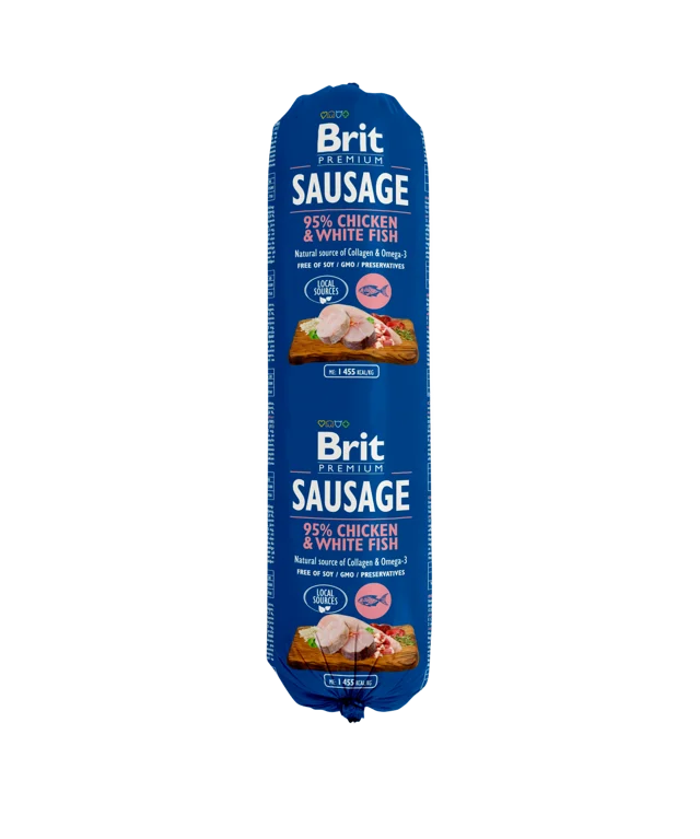To mokra karma dla psa, kombinacja mięsa i lekkiego, wyśmienitego pasztetu, którą wyróżnia doskonała przyswajalność i lekkostrawność. Brit Sausage to smakowite źródło pełnowartościowego białka zwierzęcego. Może stanowić smakowity dodatek do innych karm lub podstawę diety psa.