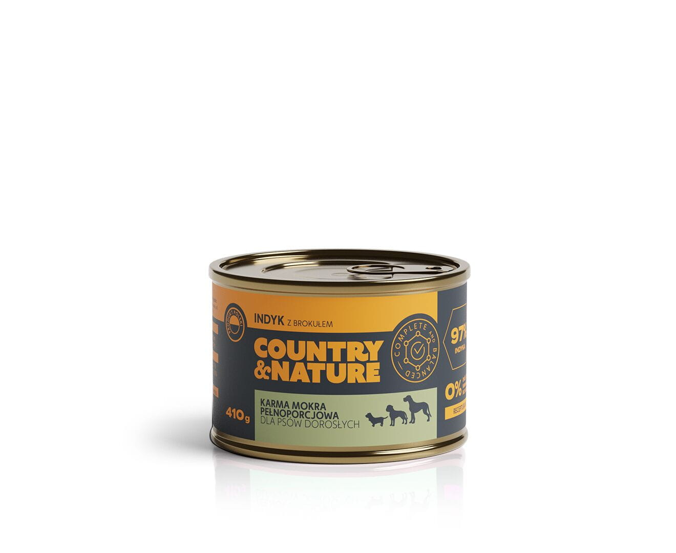 Karma polecana dla psów dorosłych COUNTRY&NATURE Indyk z brokułem została przygotowana z prostych, naturalnych składników. Receptura monoproteinowa z 97 % zawartością mięsa została wzbogacona o brokuł. Karma dzięki swojemu składowi jest doskonałym wyborem dla każdego czworonoga – również cierpiącego na alergie pokarmowe i nawracające problemy trawienne.