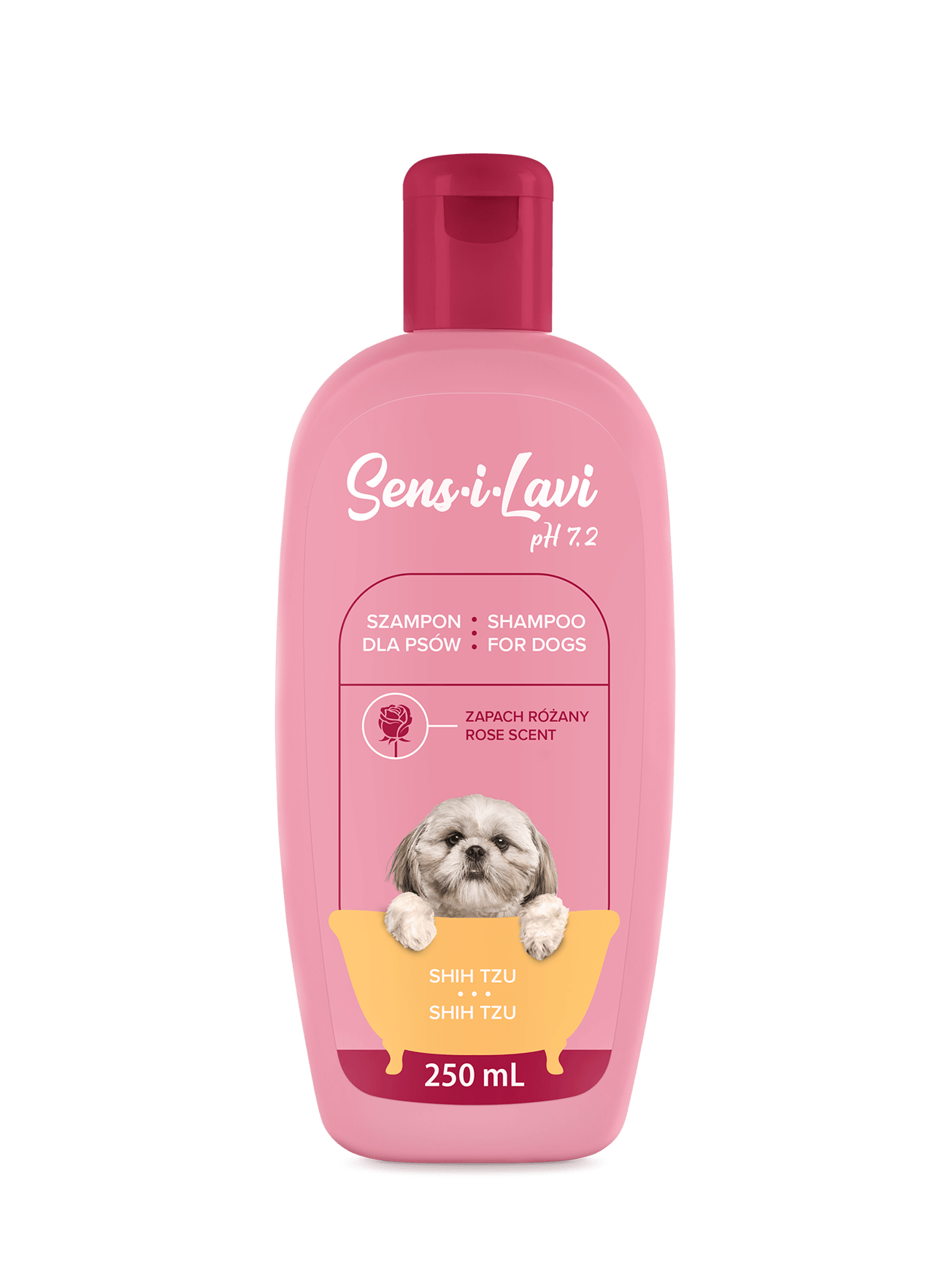 Wyjątkowo delikatny, micelarny szampon do kąpieli psów rasy Shih Tzu. Posiada odczyn pH 7,2 właściwy dla zdrowej skóry psa – dzięki temu po umyciu bariera skórna szybciej się regeneruje i wraca do naturalnej równowagi. Preparat dokładnie usuwa zanieczyszczenia. Pozostawia włosy pełne blasku i aksamitne w dotyku. Pomaga w rozczesywaniu. Ma subtelny różany zapach, preferowany przez psy. Nadaje się również dla skóry wrażliwej, podatnej na podrażnienia.