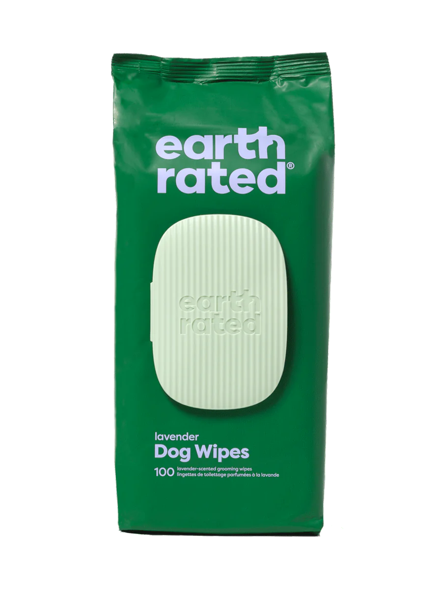 Do usunięcia oznak doskonałej zabawy - zabrudzonych łap i sierści - użyj hipoalergicznych, wegańskich chusteczek kompostowalnych EARTH RATED o aromatycznym zapachu lawendy.