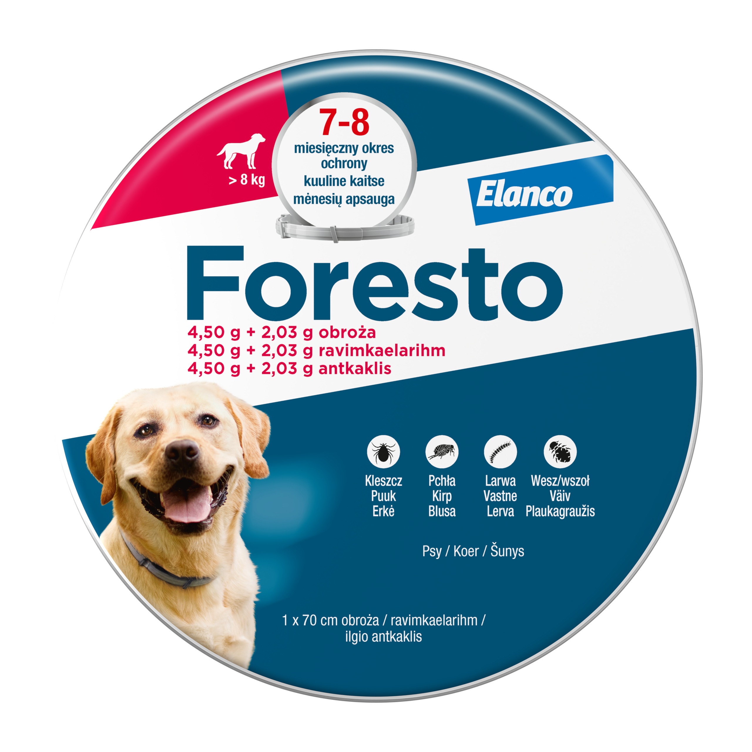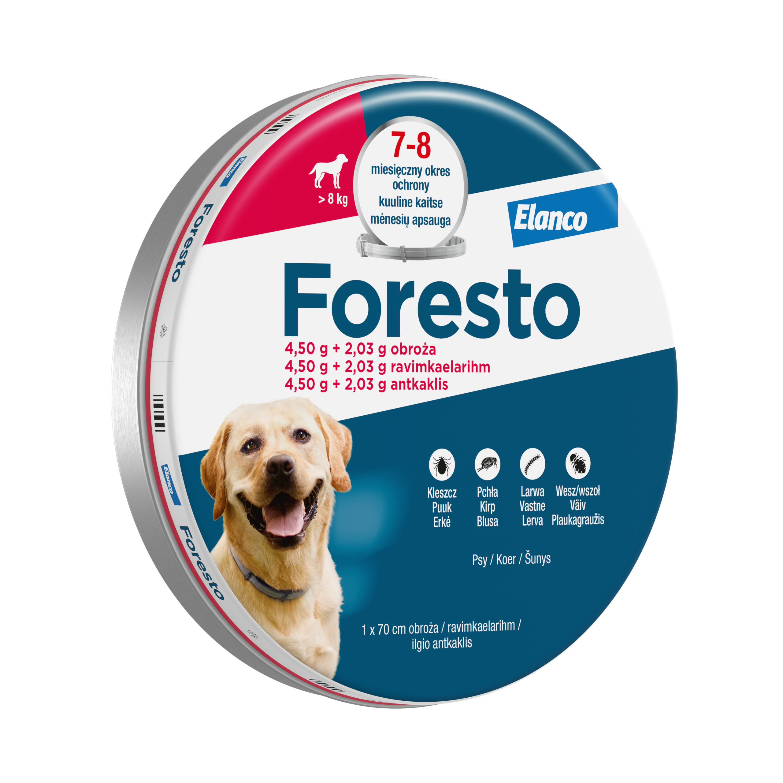 Obroża Foresto to produkt służący do zwalczania i ochrony przed inwazją kleszczy z gatunku Rhipicephalus sanguineus orazIxodes ricinus oraz pcheł Ctenocephalides canis u psów. To wyjątkowo skuteczne i ekonomiczne rozwiązanie: pewna i pełna ochrona na cały sezon. Działa również skuteczne na larwy, nimfy i dorosłe osobniki kleszczy. Obroża jest wodoodporna. Bezzapachowa obroża, w kolorze szarym przeznaczona dla psów, których masa ciała przekracza 8 kg.