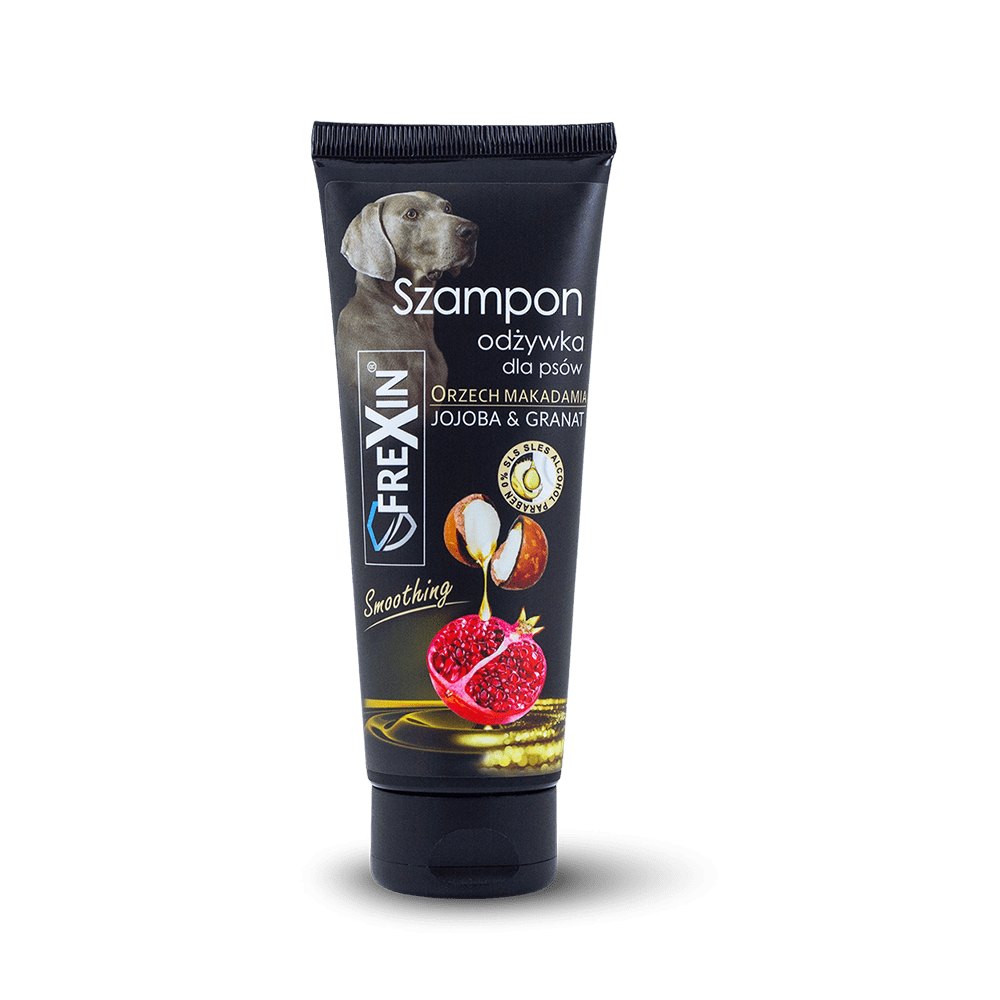 Frexin Szampon z Odżywką Jojoba & Granat to delikatny preparat pielęgnacyjny dla psów i kotów, łączący funkcję oczyszczania z odżywieniem sierści. Formuła wzbogacona olejkiem jojoba i ekstraktem z granatu pomaga utrzymać sierść miękką, gładką i lśniącą, jednocześnie ułatwiając rozczesywanie i pielęgnację. Szampon jest odpowiedni do codziennego stosowania i wszystkich rodzajów sierści.