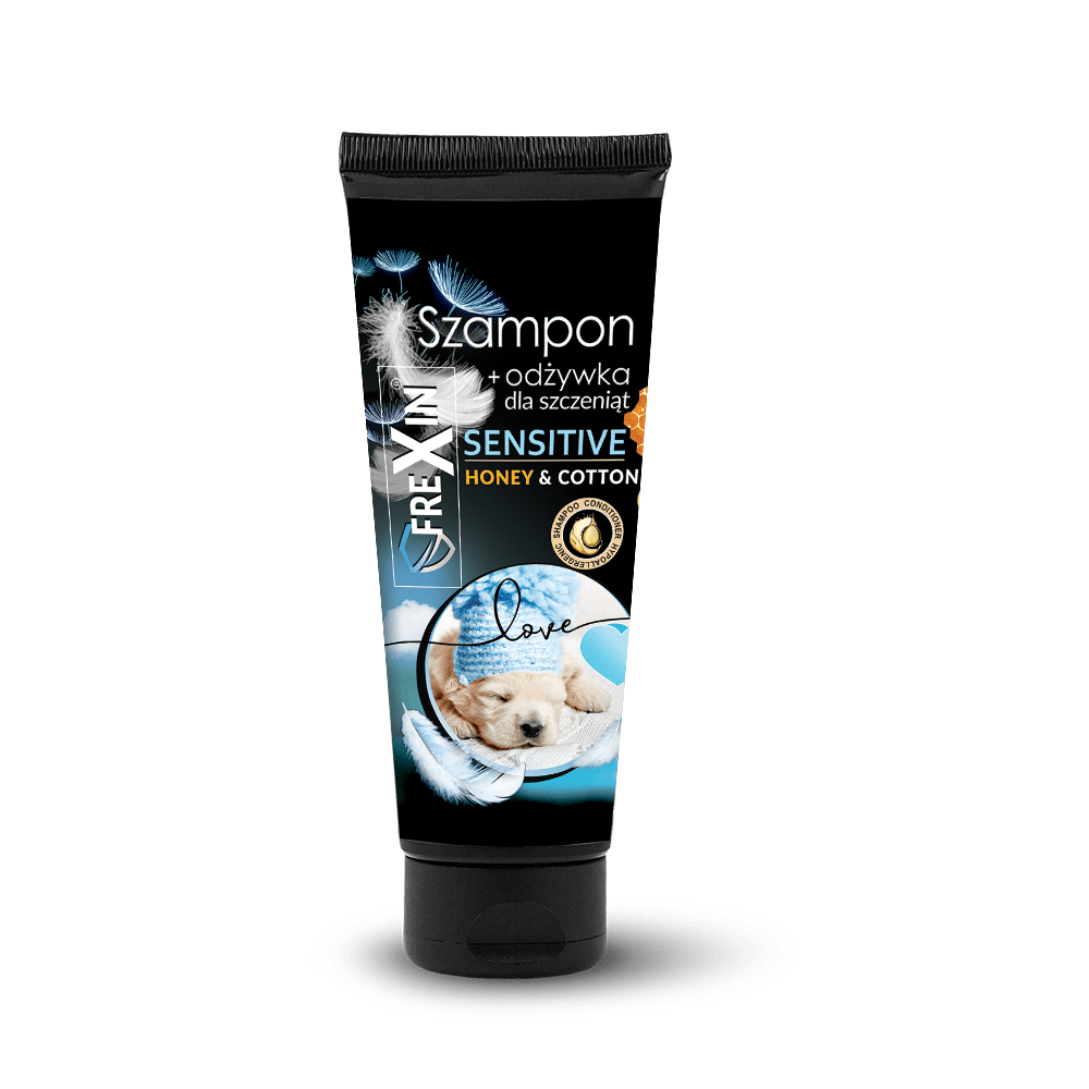 Frexin Sensitive Miód & Bawełna to wyjątkowo delikatny szampon stworzony specjalnie z myślą o szczeniętach. Jego łagodna formuła skutecznie oczyszcza sierść, jednocześnie dbając o wrażliwą skórę młodego psa. Zawarty w składzie miód intensywnie nawilża i zmiękcza włos, a olej z nasion bawełny wzmacnia cebulki oraz nadaje sierści elastyczność. Dodatek witamin wspomaga odżywienie i naturalny połysk, a odżywiająca formuła ułatwia rozczesywanie.