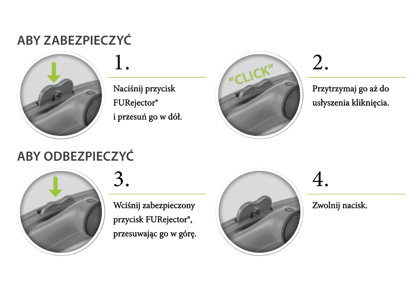 - przycisk FURejector - pozwala z łatwością usunąć sierść z narzędzia podczas jego używania