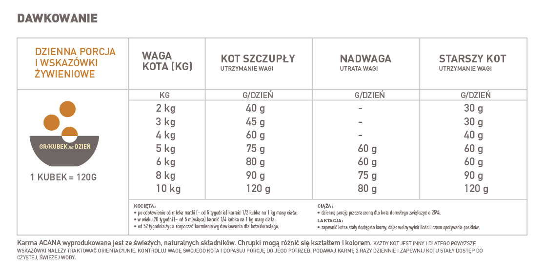 FORMUŁA JEDZENIA ACANA ODPOWIADA WYMAGANIOM ŻYWIENIOWYM USTALONYM PRZEZ AAFCO - PROFILE ŻYWIENIOWE DLA PSÓW WE WSZYSTKICH STADIACH ŻYCIA.