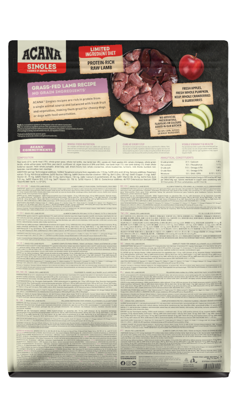 ACANA GRASS-FED LAMB TO JEDZENIE MONOBIAŁKOWE, ZAWIERAJĄCE 50% NOWOZELANDZKIEJ JAGNIĘCINY W ODŻYWCZYCH PROPORCJACH WHOLE PREY. DODATEK LIOFILIZOWANEJ WĄTRÓBKI NIEZWYKLE ZWIĘKSZA SMAKOWITOŚĆ A ŚWIEŻA DYNIA I DYNIA PIŻMOWA SĄ ŹRÓDŁEM WŁÓKIEN UŁATWIAJĄCYCH TRAWIENIE.