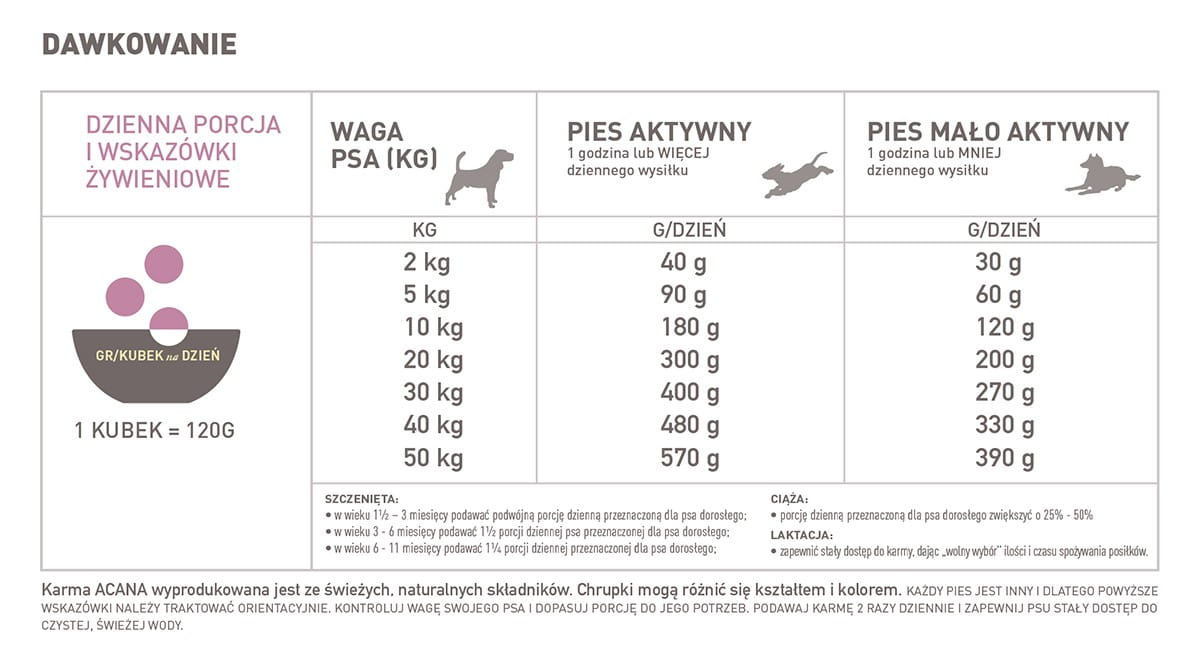 KARMA ACANA WYPRODUKOWANA JEST ZE ŚWIEŻYCH, NATURALNYCH SKŁADNIKÓW, DLATEGO CHRUPKI MOGĄ RÓŻNIĆ SIĘ KSZTAŁTEM I KOLOREM