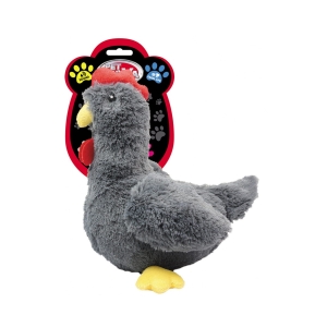 Pluszowa zabawka w kształcie kury, wykonana z wysokiej jakości materiału, miękka w dotyku i łatwa do utrzymania w czystości. Wyposażona w ukrytą piszczałkę, która aktywnie angażuje psa, zachęcając go do zabawy i interakcji.
