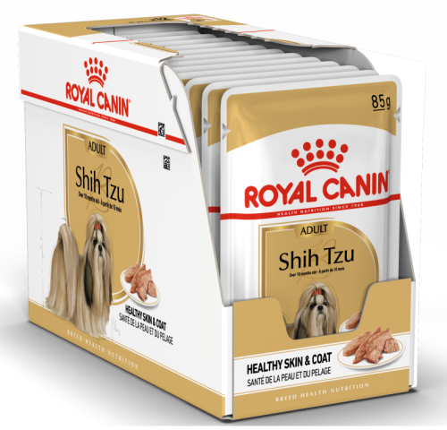 Mokra karma przeznaczona dla dorosłych psów rasy shih tzu powyżej 10 miesiąca życia, została opracowana specjalnie pod kątem potrzeb psów tej rasy. ZDROWA SKÓRA I SIERŚĆ Zapewnia wspomaganie roli skóry jako bariery, utrzymanie zdrowia skóry oraz odżywienie, długiej, gęstej sierści psów rasy shih tzu. ZDROWIE SERCA Wspomaga utrzymanie prawidłowej pracy serca, dzięki odpowiedniemu poziomowi tauryny oraz kwasów tłuszczowych EPA i DHA. POBUDZENIE APETYTU Dzięki recepturze o wysokiej smakowitości karma pobudza wybredny apetyt psów rasy shih tzu. Delikatna konsystencja w smakowitym sosie pomaga pobudzić wybredny apetyt nawet najbardziej wybrednych psów. W firmie ROYAL CANIN® intensywnie pracujemy nad dostarczaniem rozwiązań żywieniowych najlepiej dostosowanych do potrzeb zwierząt. Wszystkie nasze produkty przechodzą dokładny proces kontroli jakości, gwarantujący najwyższą jakość karmy oraz pełne pokrycie zapotrzebowania pokarmowego, odpowiednio do trybu życia Twojego psa. Oznacza to, że podając swojemu psu karmę ROYAL CANIN® Shih Tzu Adult dostarczasz mu kompletną i doskonale zbilansowaną dietę.ODPOWIEDNIA TEKSTURA