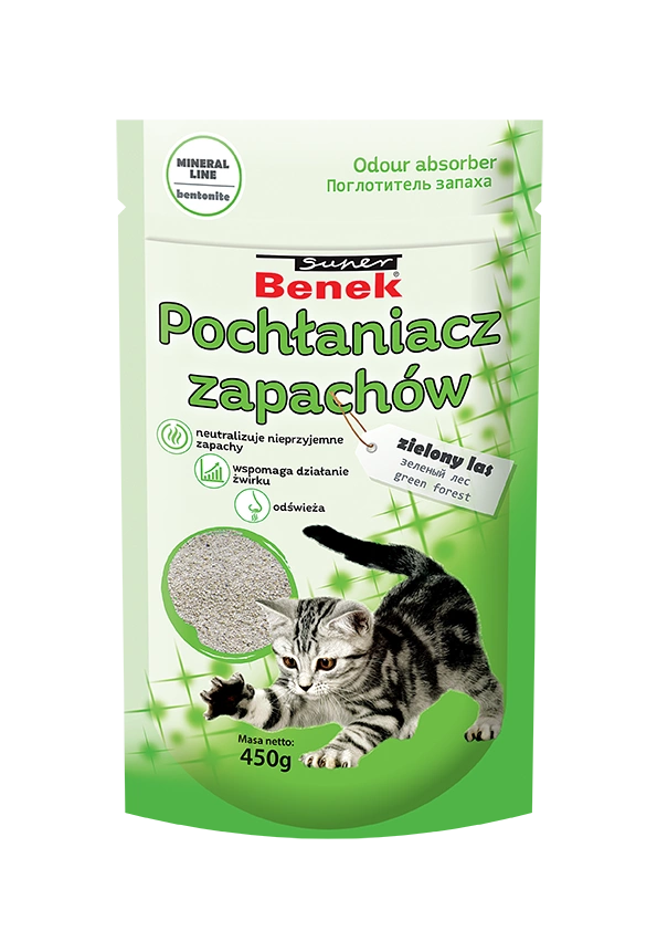 POCHŁANIACZ ZAPACHÓW Super BENEK można stosować zarówno w kuwecie jak i bezpośrednio na zabrudzone i nieświeże miejsca.