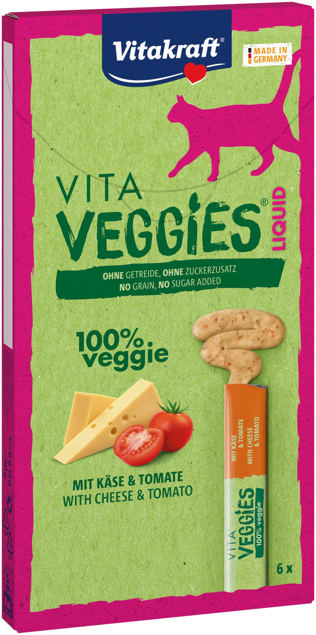 Przekąska dla kotów Vitakraft Vita Veggies Liquid Snack to przysmaki w 100% wegetariańskie, w postaci smakowitego sosu, który można wykorzystać na różne sposoby: wycisnąć do kociej miseczki podać do lizania bezpośrednio z opakowania - wyciskając nieduże ilości i pozwalając oblizywać sos polać suchą karmę, by zwiększyć jej smakowitość i zachęcić kota do jedzenia.