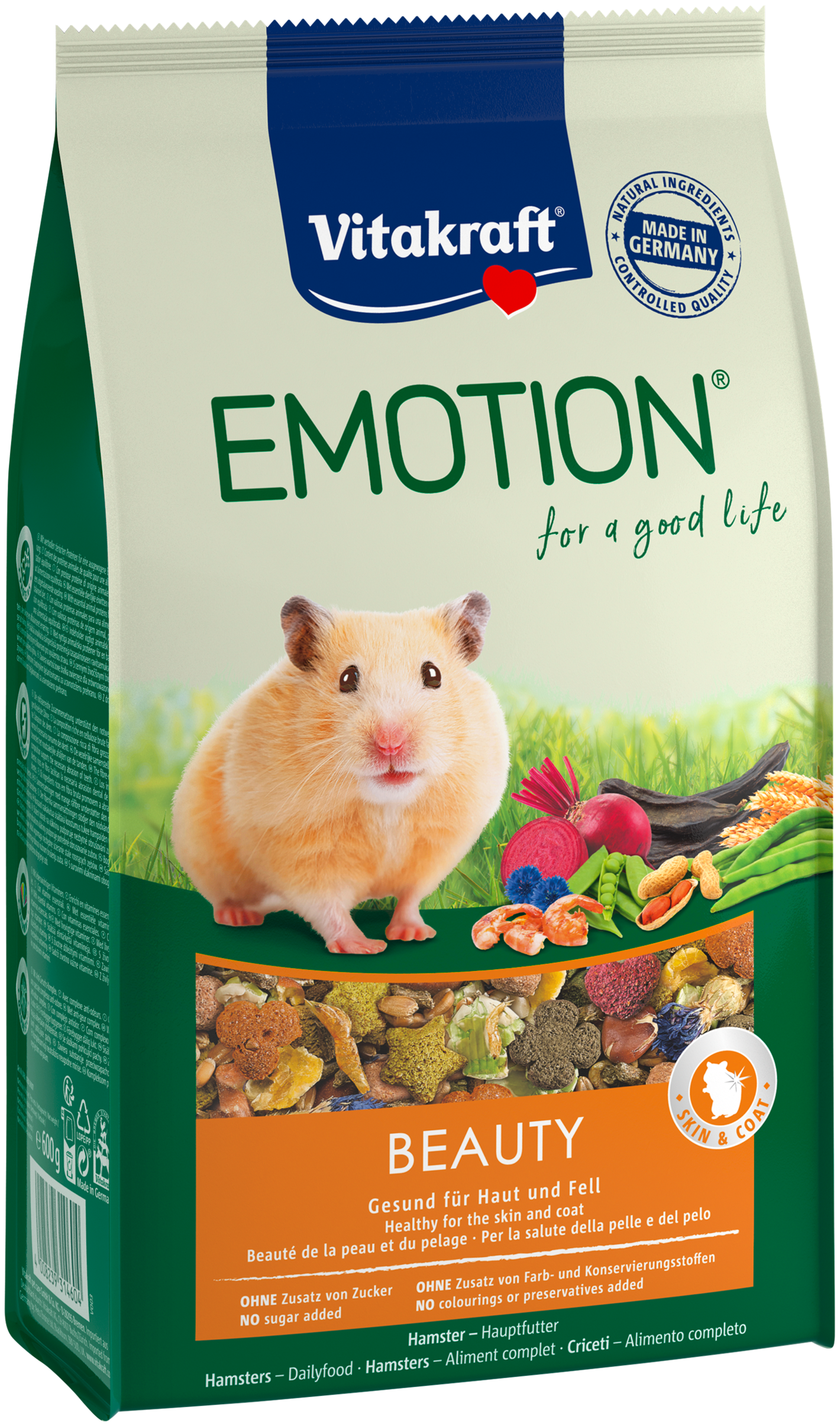 VITAKRAFT Emotion Beauty - karma dla chomika to doskonała podstawa codziennej diety, bogatej w składniki odżywcze oraz mikro- i makroelementy. Zawarte w każdym kęsie kwasy Omega 3 i Omega 6 to gwarancja wsparcia okrywy włosowej, która staje się miękka i jedwabiście gładka. Starannie wyselekcjonowane składniki pochodzące z ekologicznych upraw stanowią podstawę pysznego dania, które zmienia zwykły posiłek w prawdziwą przyjemność.