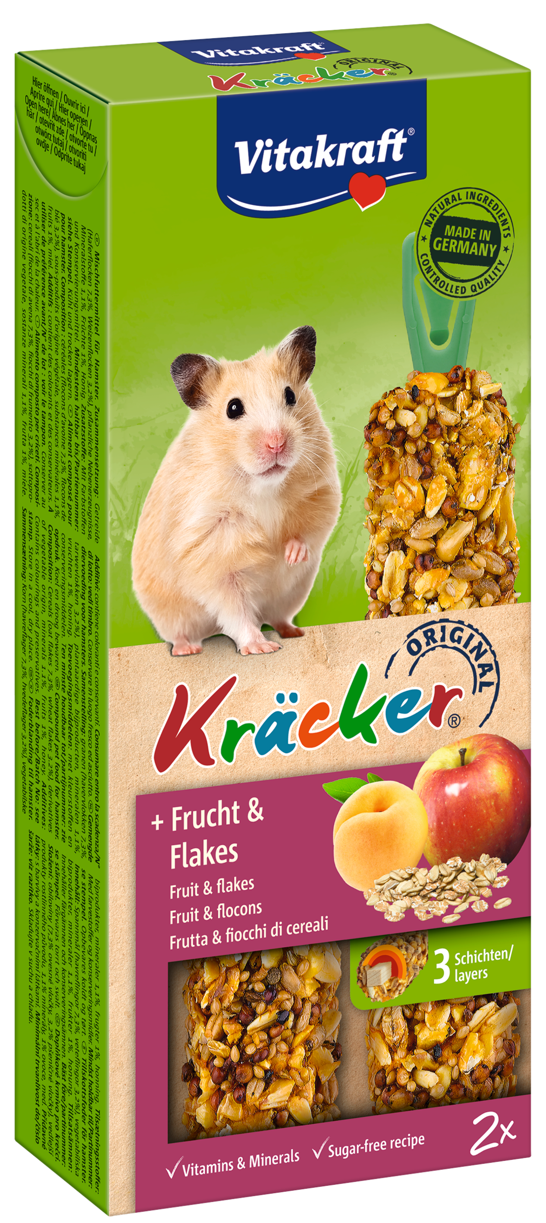 Karma uzupełniająca dla chomików w postaci krackerów, które zostały poddane delikatnemu procesowi opiekania w piekarniku. Zawierają one najlepsze zboża, nasiona, owoce lub warzywa. Krackery są opiekane na naturalnym drewnianym patyczku z praktycznym uchwytem. Różne warianty smakowe,