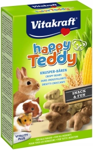 HAPPY TEDDY- karma uzupełniająca dla wszystkich małych zwierząt. Smakowite misie z dodatkiem pysznych warzyw. Karma jest urozmaiceniem codziennej diety zwierzęcia.Podawać 2-4 przekąski codzienne, zależnie od wielkości zwierzęcia.