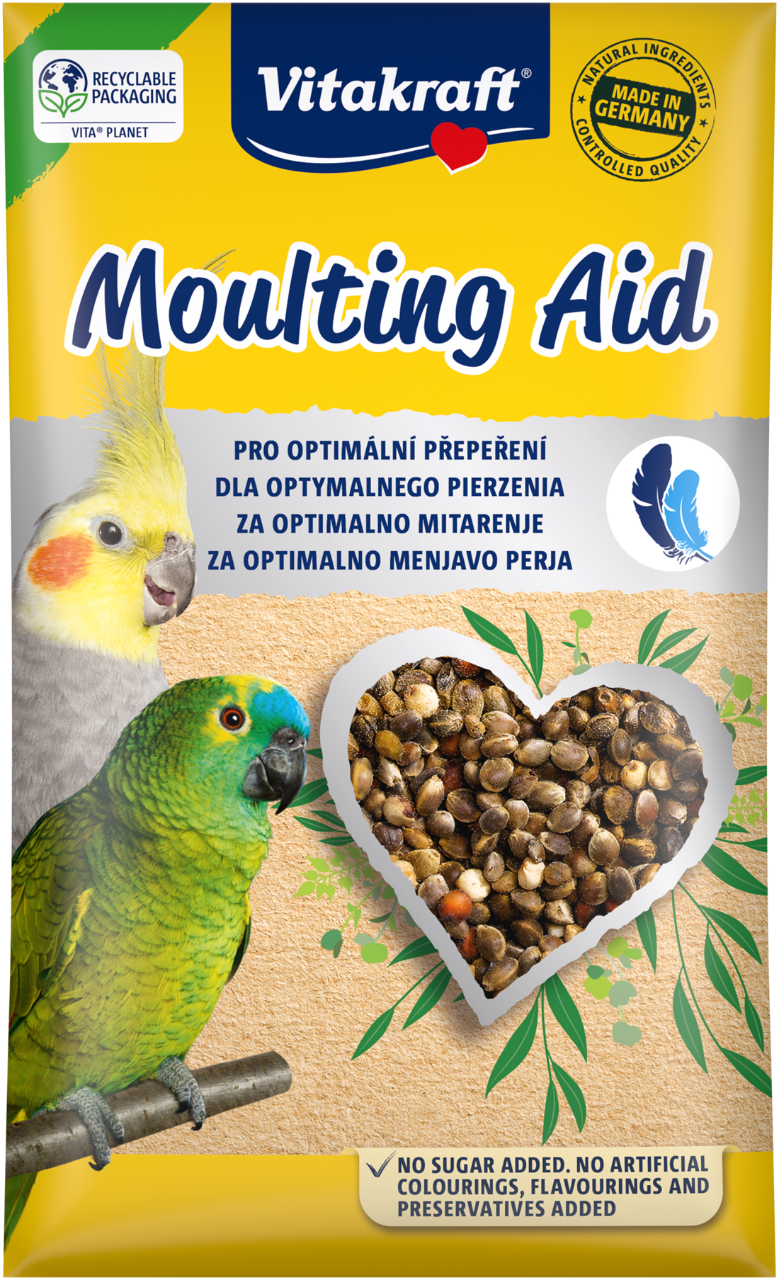 Karma uzupełniająca dla średnich i dużych papug. Pokarm wspomagający pierzenie zawierający witaminy, minerały i składniki odżywcze.