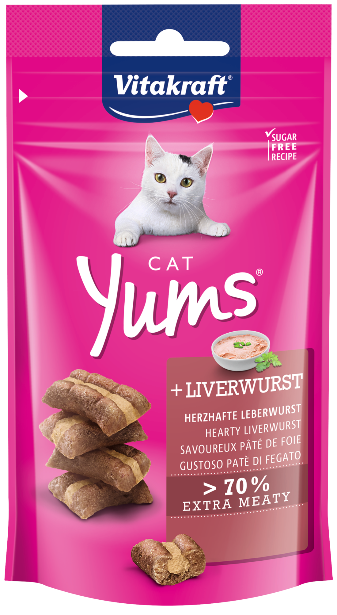 Vitakraft Cat Yums - smakołyk dla kotów, charakteryzujący się wysoką zawartością mięsa.
