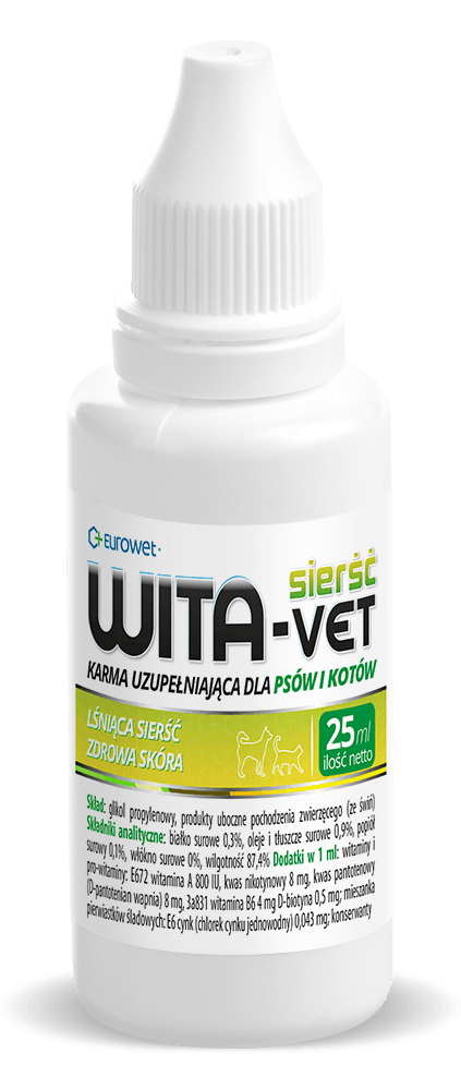 Wita-Vet Regenerator sierści i skóry dla psów i kotów to preparat wzmacniający włos i poprawiający stan skóry psów i kotów.