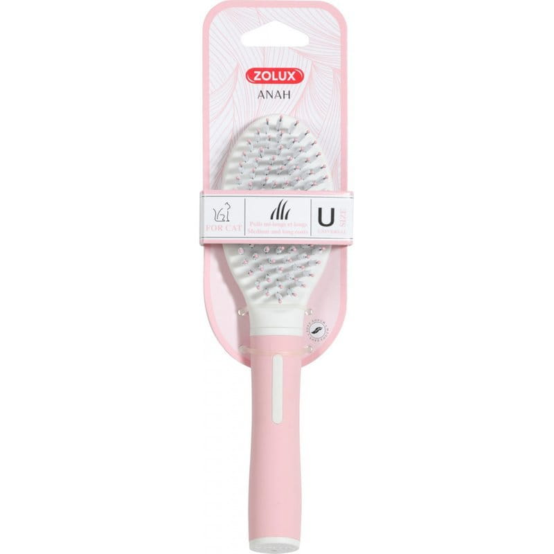 Szczotka z podwójnym włosiem umożliwia delikatne szczotkowanie podszerstka, dzięki elastycznym igłom, których plastikowe końcówki zapewniają kotu większy komfort. Nylonowe włosie usuwa martwy podszerstek, a także doskonale wygładza, pozostawiając lśniącą sierść.