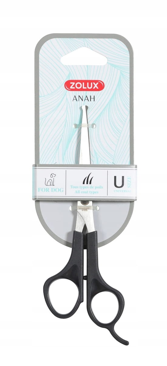 NOŻYCZKI PROSTE z zaokrąglonymi końcówkami są przeznaczone do usuwania kołtunów i skracania psiej sierści, w szczególności we wrażliwych miejscach (łapy, okolice oczu, pysk itp. ). Zaokrąglone końcówki sprawiają, że przy kontakcie ze skórą nożyczki celowo ześlizgują się, chroniąc tym samym zwierzę przed skaleczeniami.