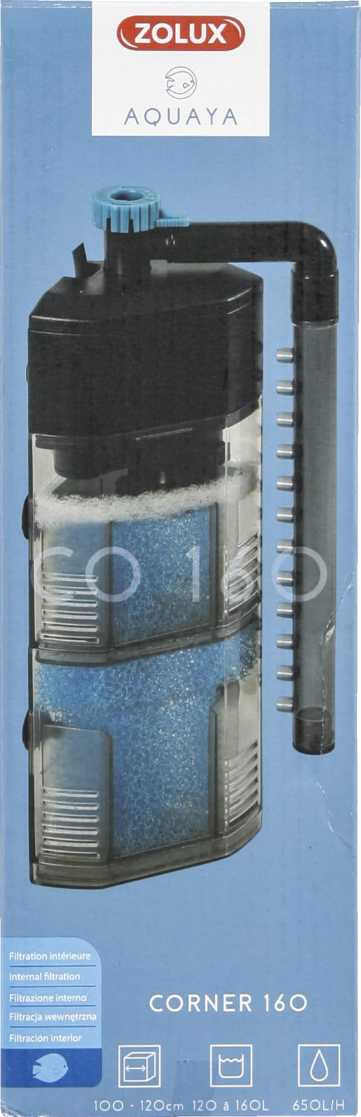 Filtr Zolux Aquaya Corner 160 jest idealnym rozwiązaniem dla akwariów lub akwaterrariów o pojemności od 120 do 160 litrów.