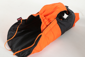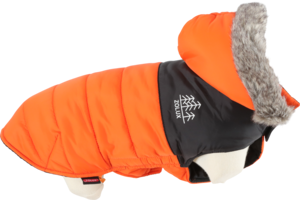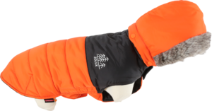 Pikowana, wodoodporna kurtka - modna i niezwykle wygodna. Odpinany kaptur przymocowany za pomocą zatrzasków, z bardzo miękką podszewką z futra. Płaszcz regulowany przy kołnierzu i na klatce piersiowej przy pomocy rzepów i gumek. Dopasowane kolorystycznie otwory na smycz i łapy.