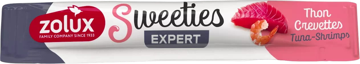 Sweeties dostępne są w 4 wariantach smakowych: tuńczyk, kurczak, tuńczyk z krewetką i tuńczyk z łososiem. Idealnie nadają się do rozsmarowania na macie do lizania, ale można je podawać także w sposób tradycyjny: prosto do pyszczka lub do miski.